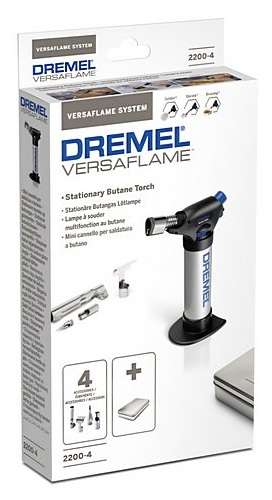Базовый набор любого мастера вряд ли может обойтись без паяльной лампы. Хороший выбор — паяльная лампа Dremel VersaFlame. Если описывать ее в двух словах, то получится: "качественно и безопасно". Это единственная стационарная паяльная лампа, которая безопасно объединяет в себе возможность использования открытого пламени с катализатором и паяльной насадкой. Dremel VersaFlame работает на сжиженном бутане (т. е. на том же газе, что и зажигалки, а это значит, что инструмент готов к работе "всегда и везде"), быстро разогревается и быстро перезаряжается. Даже при максимальной нагрузке паять, сваривать и заниматься иной термообработкой можно до 75 минут. Кроме того, инструмент легко "настроить" под конкретный проект: у Dremel VersaFlame есть возможность выбора температурного режима.