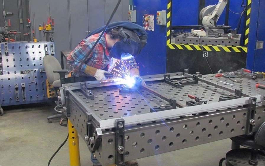 Заранее продуманный план действий поможет также и в выборе материала столешницы. Верстаки, как правило, изготавливаются из лиственных пород деревьев, таких как бук или дуб. Для большинства DIY-задач это идеальная поверхность. Однако стоит помнить, что такие виды работ, как сварка, паяние, выжигание или рисование противопоказаны деревянной столешнице. Для этого необходимо огнеупорное и / или водонепроницаемое покрытие — к примеру, из металла или линолеума. В любом случае поверхность должна быть как можно более гладкой. Наличие швов крайне нежелательно, так как они с большой вероятностью будут собирать в себя грязь и мелкие стружки/осколки, что в итоге может привести к повреждению деталей или травмированию мастера.