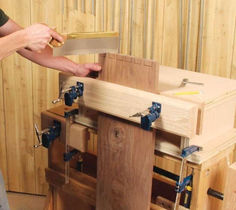 Рабочее место должно способствовать не только безоблачному полету фантазии мастера, но и выполнению разного рода кропотливых и нудных работ, требующих надежной фиксации всех инструментов и деталей. Для этого используются всевозможные виды тисков, а также специальные отверстия в столешнице, которые позволяют с помощью соответствующих втулок закрепить детали разнообразной длины и формы. Что касается тисков, то в основном они делятся на боковые, ножные, лицевые и инженерные. Боковые и лицевые тиски располагаются на торцах столешницы и позволяют закрепить обрабатываемую деталь вдоль либо поперек верстака. Ножные, соответственно, служат для вертикального крепления. Инженерные тиски, как правило, изготовлены из металла и предназначены для сверхпрочной фиксации обрабатываемых деталей.