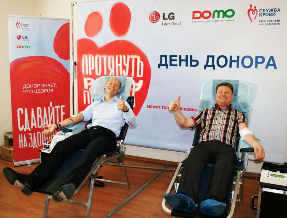 За время участия в Программе развития массового добровольного донорства крови и ее компонентов в России, начиная с 2009 года, когда LG Electronics стала первым из бизнес сообщества партнером Минздрава России и ФМБА России, проведено уже 40 Дней донора (в офисах, на заводе, в Сервисном представительстве, совместно с партнерами), 1/4 сотрудников компании являются донорами. В 2012 году донорская эстафета «Поезд инноваций и добрых дел», организованная в рамках проекта компании LG «Корпоративное волонтерство в области донорства крови», была занесена в Книгу Рекордов России как самая большая по протяженности. Она составила 4285 километров. В каждом из 8 городов (Саранск, Ульяновск, Казань, Самара, Саратов, Волгоград, Сочи и Воронеж) маршрута проводились донорские акции с участием послов добра — прославленных спортсменов.