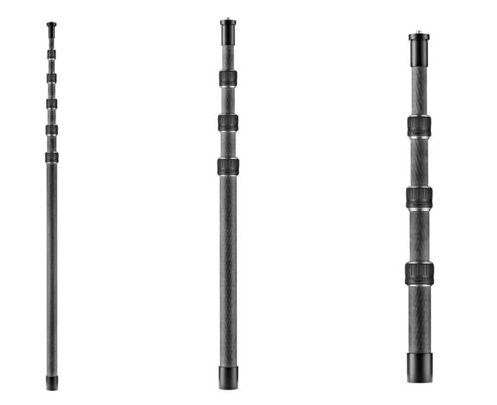 В сочетании с удлинителями, штатив позволяет вести съёмку на большой высоте. Он оснащен специально разработанным алюминиевым адаптером, который позволяет установить удлинитель с боку штатива для обеспечения максимальной устойчивости. Штатив выполнен из карбона и имеет лёгкий вес и компактные размеры.