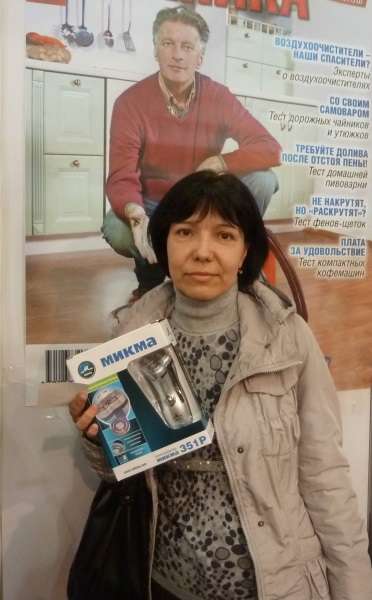 В 16.00 уже немного уставшие, но оставшиеся специально на розыгрыш граждане очень обрадовались полезным призам. Еще бы, скоро отпуск – и дорожный чайник МИКМА будет весьма кстати. Щипцы для завивки и выпрямления волос VES порадуют любую модницу: разные насадки позволят создать любую прическу. Электрическая кофемолка МИКМА помимо кофе способна превратить в муку любую крупу или специи, а машинка для стрижки волос VES обеспечит регулярный уход за шевелюрой. В общем, день оказался особенно счастливым для одного молодого человека: он выиграл и в первый розыгрыш, и во второй! Везет же людям.