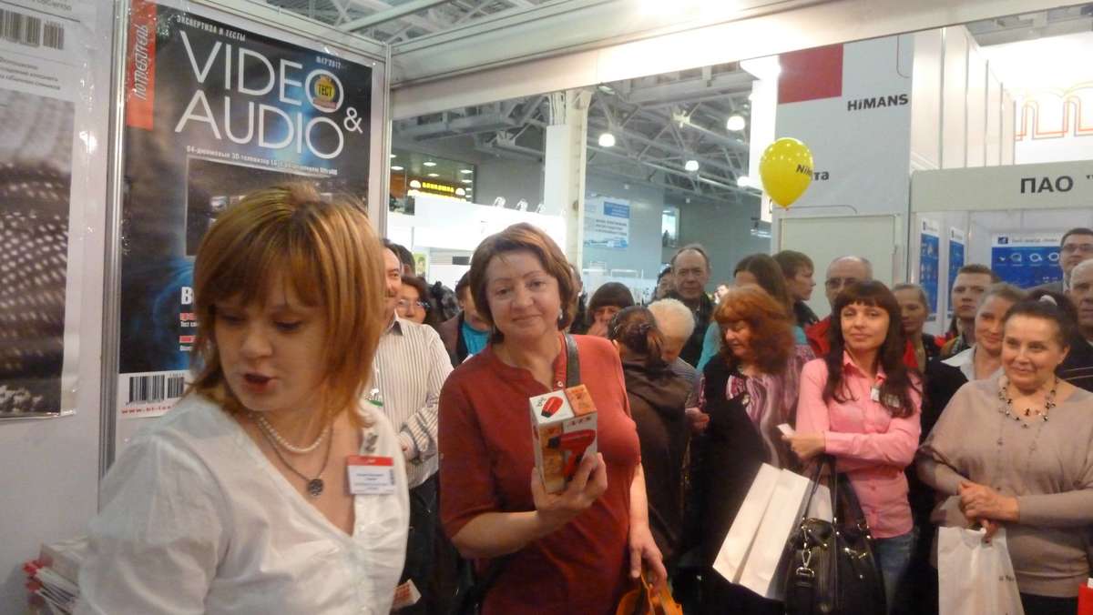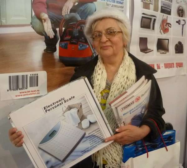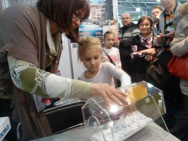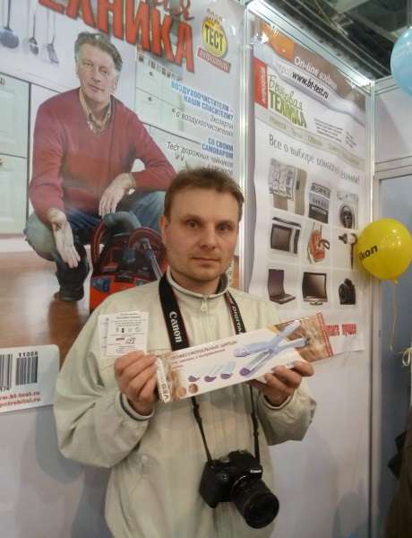 В субботу, 13 апреля, на стенде журнала «Потребитель. Бытовая техника» состоялось два розыгрыша малой бытовой техники. В первой половине дня многочисленные посетители мечтали выиграть бритву МИКМА, электрическую зубную щетку VES, массажер МИКМА, весы VES. Лототрон крутила и выбирала счастливые номера очаровательная юная блондиночка, пришедшая на выставку с родителями. Спасибо ей большое за помощь!