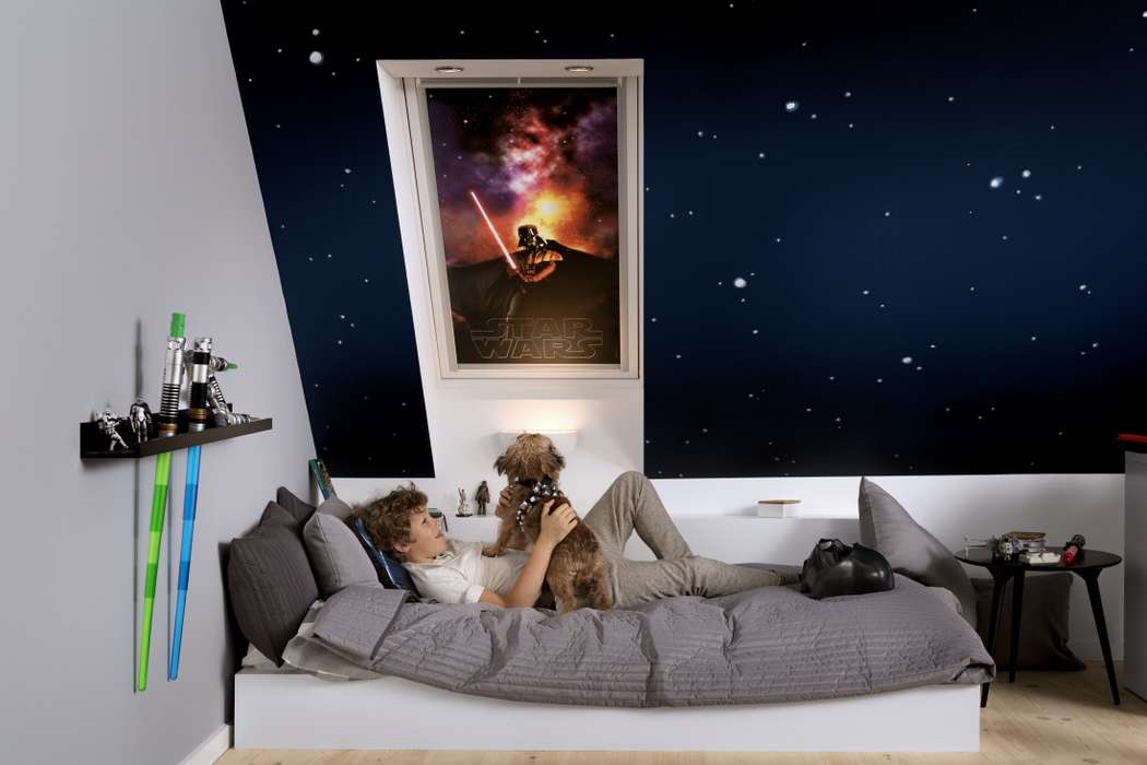 Кроме того, при выборе декора для окон в мансарде можно не отказываться от привычных деталей: VELUX предлагает на выбор не только маркизеты и рольставни, но и тюль, гардины, жалюзи, римские шторы, светоотражающие и теплосберегающие шторы, шторы-плиссе, рулонные и затемняющие варианты. А для тех, кто не боится смелых решений и готов к по-настоящему яркому дизайну разработаны специальные коллекции Star Wars, Disney или шторы в сдержанной голландской манере от дизайнеров Scholten & Baijings.