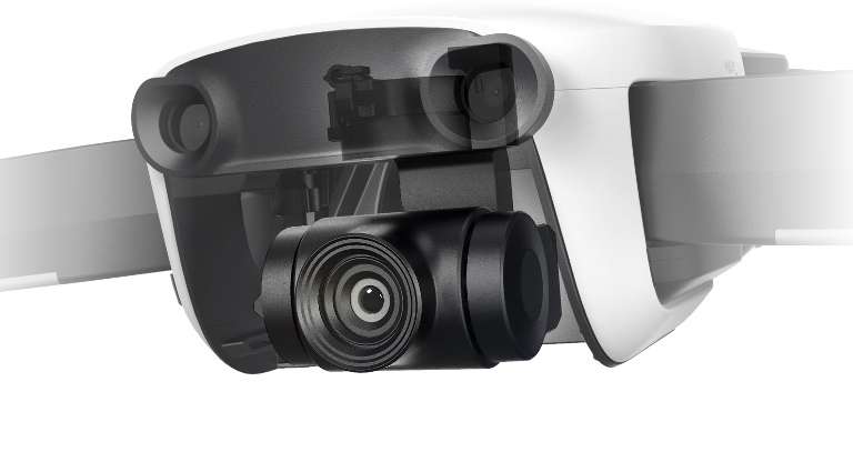 Mavic Air оснащается 12 Мп камерой с 1/2.3 дюймовым CMOS сенсором и объективом 24 мм (экв.35 мм) с максимальной диафрагмой f/2.8. Для надёжной и плавной стабилизации, камера размещается на трёх-осевом карданном подвесе, который утоплен в корпус и дополнительно закреплён на специальных амортизаторах.