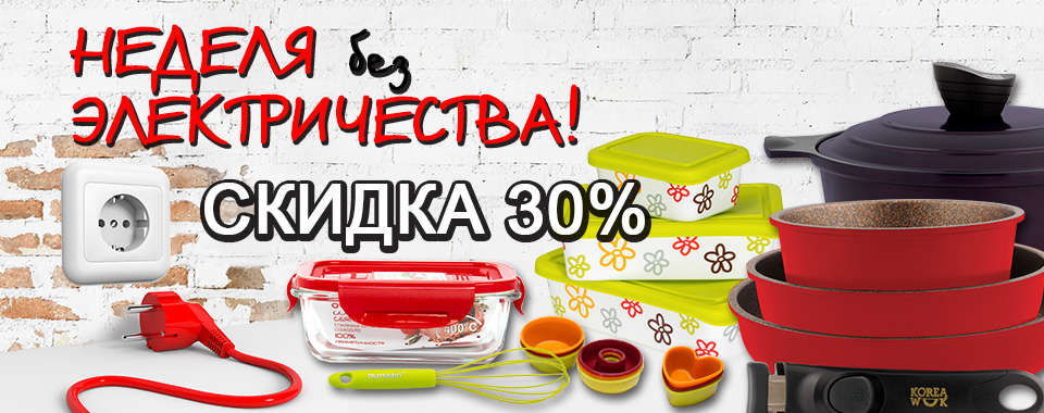 С 15 октября по 21 октября* в интернет-магазине oursson.ru весь ассортимент посуды, кухонные принадлежности и инструменты для готовки можно купить со скидкой до 30 %.