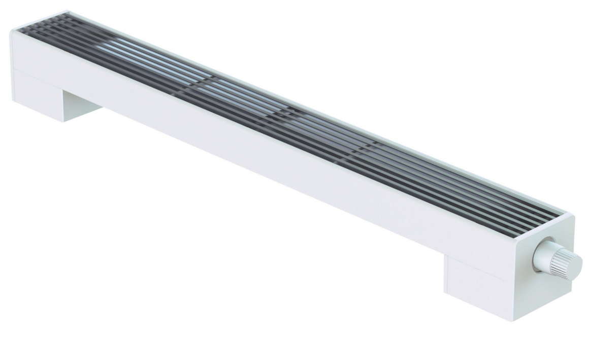Такие конвекторы, как правило, оснащены термостатическими вентилями. Самый низкий напольный конвектор COIL-SPF0 имеет высоту всего 148 мм. Ширина самых узких напольных конвекторов без вентилятора COIL-SUF2 составляет 115 мм. Производительный конвектор без вентилятора COIL-SWF2 предназначен для сухих и влажных помещений. Конвектор COIL-SK1 имеет вентилятор, при этом его высота не превышает 238 мм.