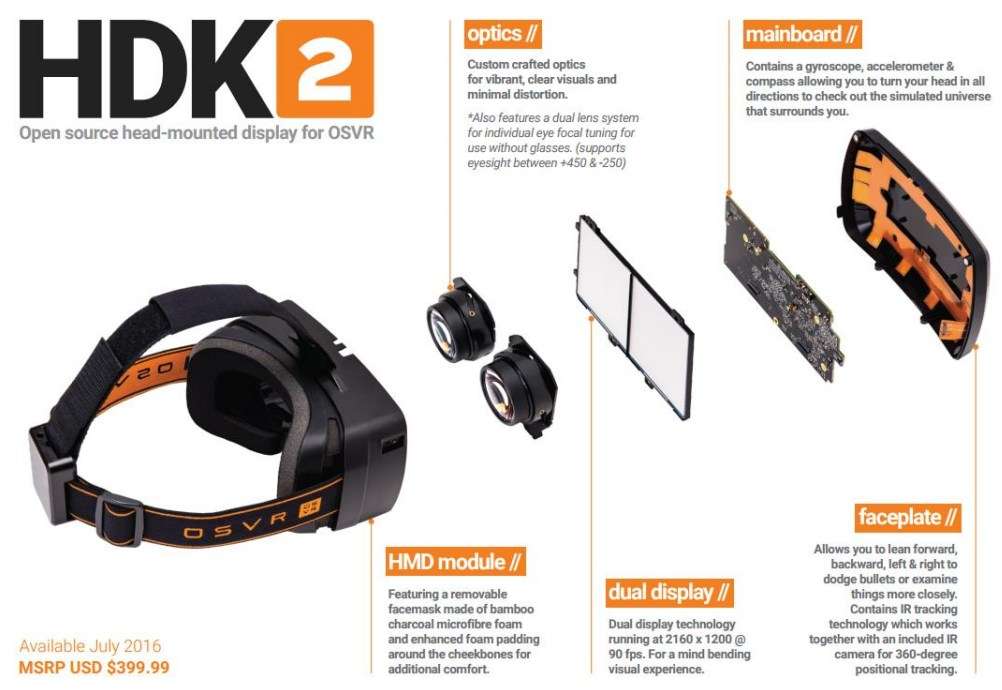 ЛОС-АНДЖЕЛЕС (E3 2016) — Razer и Sensics, соучредители и организаторы Open Source Virtual Reality (OSVR) — крупнейшего в мире открытого объединения в сфере виртуальной реальности, сегодня представили новейший Hacker Development Kit — HDK 2. HDK 2 включает в себя улучшенный дисплей для визуальных ощущений, равных Oculus Rift и HTC Vive.