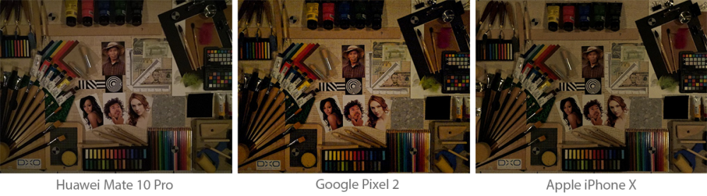 Сравнение фотогрфаий выше показывает, насколько лучше iPhone X устраняет шумы, чем iPhone 5s. Но даже iPhone 6, который использует тот же самый модуль камеры, что и iPhone 5s, значительно лучше справляется с подавлением шумов, благоларя доработанному программному обеспечению. При этом Samsung Galaxy Note 8, Google Pixel 2 и Huawei Mate 10 Pro явно опережиают iPhone X в этой области.