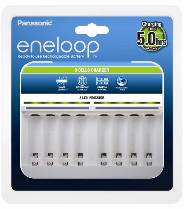После установки в устройство от одного до четырех Ni-MH аккумуляторов происходит их первичная диагностика – на экране отображается общее число заряженных аккумуляторов за весь период использования «зарядки», напряжение, а также обозначаются поврежденные или отработавшие свой жизненный цикл аккумуляторы. Затем начинается зарядка, в процессе которой при нажатии кнопки Display пользователь может отследить прошедшее время (T) и напряжение (V). Зарядка четырех элементов питания eneloop pro занимает не более четырех часов и контролируется процессом Smart charge, который прекращает процесс до момента наступления избыточного заряда. Высветившееся на дисплее слово FULL означает, что аккумуляторы заряжены до уровня полной емкости.
