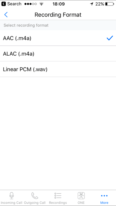 Последнюю вкладку используют для отслеживания места, оставшегося в айфоне или на карте. Есть возможность в ручном режиме выбирать формат для записи: ALAC (.m4a), Linear PCM (.wav), AAC (.m4a).