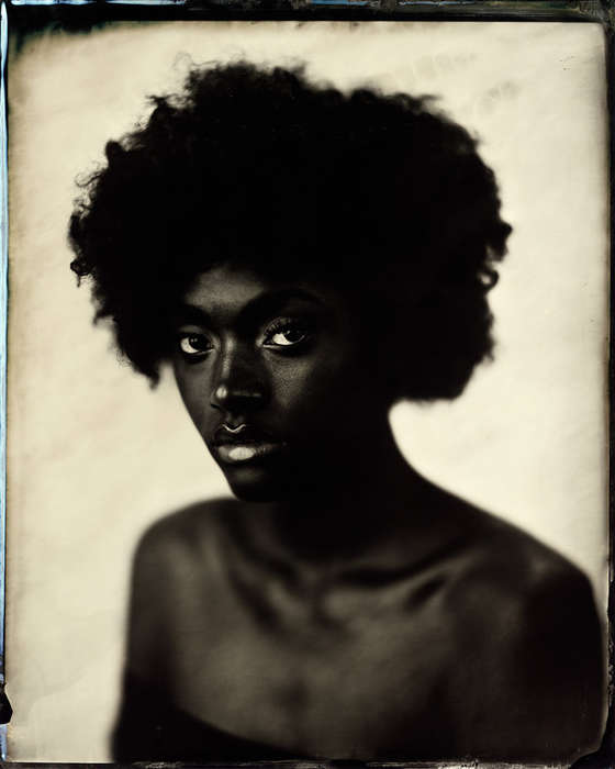 «Наоми была освещена 6-дюймовым рассеивающим параболическим зонтом, а фон был освещен с помощью зум-отражателя сверху. Эта фотография размером 8×10 " была сделана на студийную камеру E&HT Anthony 11×14" в связке с объективом Wollensak Vitax No. 5 и химическим раствором, смешанным вручную. Я самоучка и создаю свои работы, следуя традициям мастеров 19-го века. Используя химию, свет и маленькую магию, мои портреты способны передать внутренний мир человека, сохраняя образ на протяжении многих поколений»