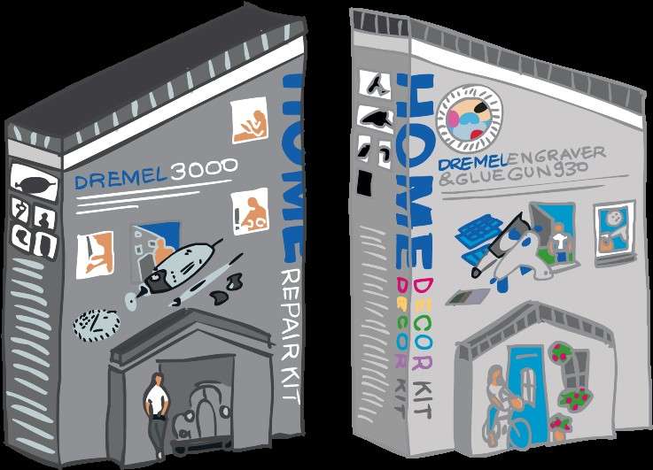 Для ремонта: многофункциональный инструмент Dremel 3000, 105 высококачественных насадок (включая насадки EZ SpeedClic) и 3 приспособления: гибкий вал, направляющая для резки и шлифовальная платформа. В набор также входит информационный буклет и практичная сумка на молнии.