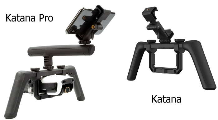 Katana была специально разработана для использования возможностей камеры Mavic Air в местах, где запрещён запуск квадрокоптеров. Система состоит из двуручного держателя, на который с помощью стандартной штативной резьбы монтируются крепления для смартфона и квадрокоптера. Версия Katana Pro имеет дополнительную рукоятку для удобства съёмки одной рукой или съёмки с более низкого ракурса.