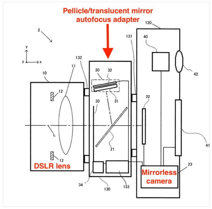 Патент показывает адаптер, который содержит полупрозрачное зеркало и встроенный модуль автофокусировки с определением фазы. Nikon публично заявил, что работает над беззеркальной камерой, которая поднимет планку. Новые патенты демонстрируют неординарность и страмление компании создать нечто впечатляющее.