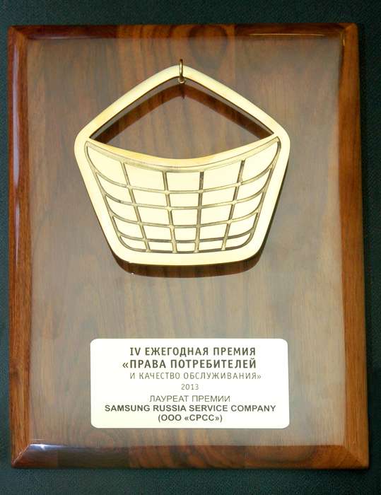 Москва, 16 июля 2013 г. — Сервисное подразделение компании Samsung Electronics, занимающееся обслуживанием фирменной техники, стало лауреатом IV ежегодной премии «Права потребителей и качество обслуживания-2013» в номинации «Товары народного потребления. Сервисное обслуживание». Премия «Права потребителей и качество обслуживания» — ежегодная национальная общественная награда, вручаемая наиболее успешным проектам в области защиты прав потребителей и повышения качества товаров и услуг.