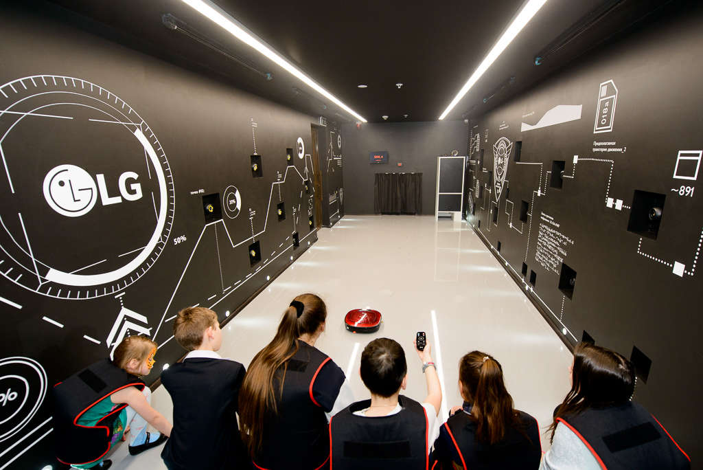 В прохождении первого испытания — лазерного лабиринта - детям поможет супертонкий робот-пылесос LG. Второе испытание — канатная паутина, по которой надо подняться на второй этаж. Далее ребята должны найти ключ в серверной комнате от двери к следующему препятствию — крутящемуся тоннелю. Последнее испытание для смелых агентов — свободное падение с 5 метровой высоты. После завершения всех испытаний, ребята выходят из образовательно-развлекательной зоны LG, наполненные новыми навыками и умениями. LG надеется, что для всех ребят прохождение «Школы секретных агентов» будет интересным и полезным.