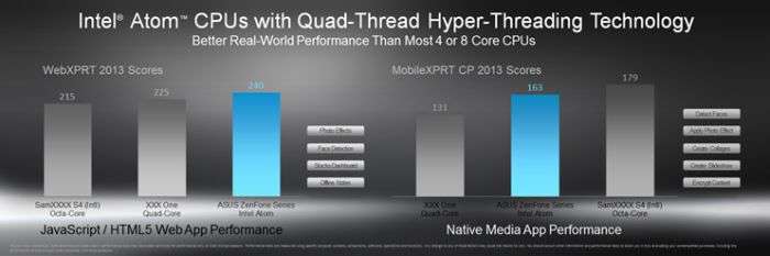 В устройстве Asus PadFone mini, как и в смартфонах Asus ZenFone применяются современные процессоры Intel Atom, которые превосходят своих аналоги в широком спектре тестовых приложений и даже могут в целом ряде задач конкурировать с четырех- и восьмиядерными решениями.