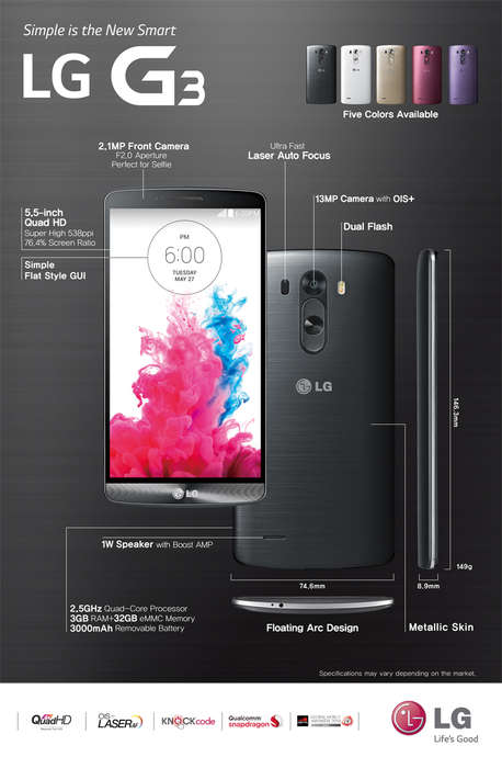 “Наша самая интеллектуальная инновация на быстро изменяющемся рынке смартфонов создает идеальную гармонию между передовыми технологиями и простотой их использования, - сказал доктор Джонг-сеок Парк, президент и исполнительный директор компании LG Electronics Mobile Communications. - LG G3 стал результатом наших усилий по воплощению этой идеи в реальный продукт. И мы невероятно гордимся полученным результатом”.