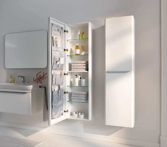 Каждая деталь мебели myDay продумана для максимального комфорта пользователей. Оригинальный чехол для хранения вещей на дверях пенала, разные виды полок, а также удобные системы хранения в тумбах под умывальниками позволяют рационально и удобно организовать пространство. Внутренние ящики оснащены встроенной подсветкой и нескользящими ковриками. Шкафы-пеналы снабжаются магнитными держателями для удобства хранения мелочей.