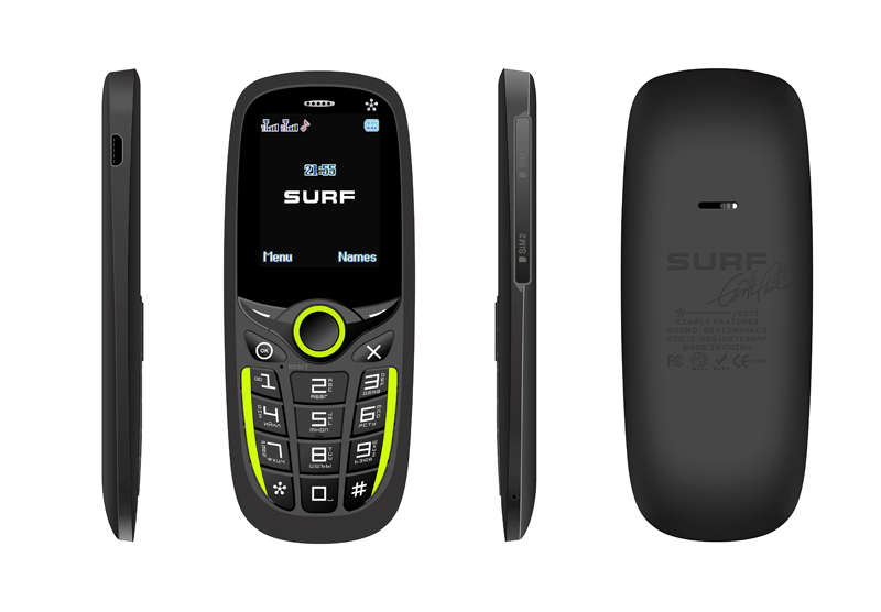 Just5 Surf на предлагает следующий набор опций: 1,77-дюймовый цветной экран с разрешением 128 х 160 точек, два гнезда для SIM-карт, память на 100 контактов, функцию громкой связи и аккумулятор, обеспечивающий до 10 дней автономной работы. Цветовых вариантов два: черный и лимонно-желтый.