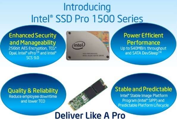 Санта-Клара (Калифорния), 10 сентября 2013 г. — Intel представила семейство профессиональных твердотельных накопителей, включающее модель Intel Pro серии 1500. Новые устройства хранения данных корпоративного уровня спроектированы специально для того, чтобы обеспечить простое внедрение на предприятиях и эффективное управление с высоким уровнем безопасности. Кроме того, они позволяют уменьшить совокупную стоимость владения и повысить скорость работы.