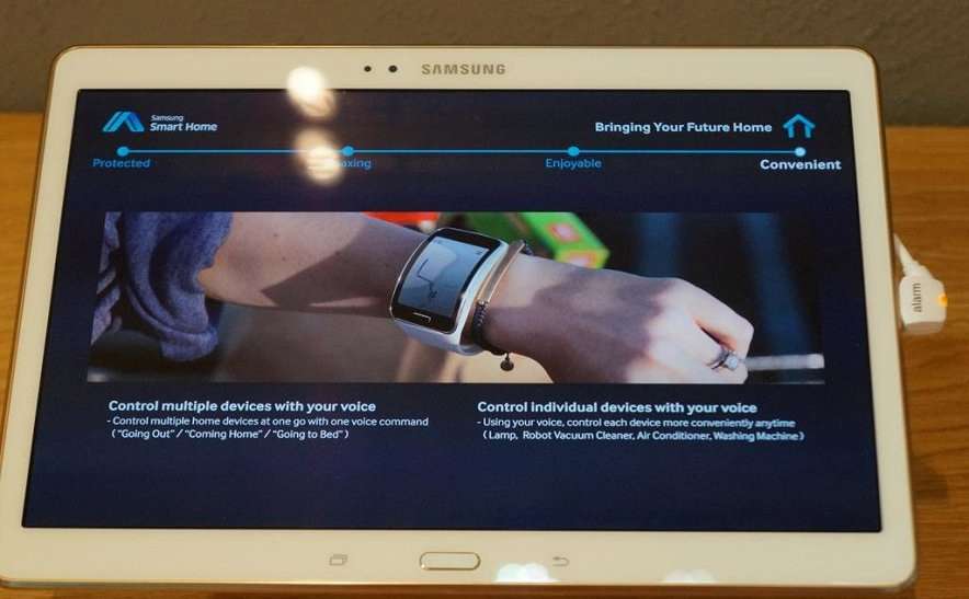 Итак. Планы производителя озвучены четко. Ну а мы раскрываем подробности о концепции Samsung Smart Home. Что она нам даст? В первую очередь это, конечно, возможность руководить из любой точки мира широким спектром бытовой техники Samsung: от посудомоечных до стиральных машин, духовых шкафов, климатических гаджетов и даже освещения в квартире. Для этого непременно нужен будет стабильный Интернет. Понадобится и подходящий мобильный гаджет корейской компании — смартфон, планшетник или, на худой конец, SMART-часы. Хотя управление бытовухой возможно даже с Smart TV с технологией распознавания жестов. Взмахнул рукой — и робот-пылесос ринулся в бой с пылью, а вы продолжаете смотреть фильм. Чтобы вот так бездействовать, нужно предварительно установить в девайс соответствующее управленческое приложение.