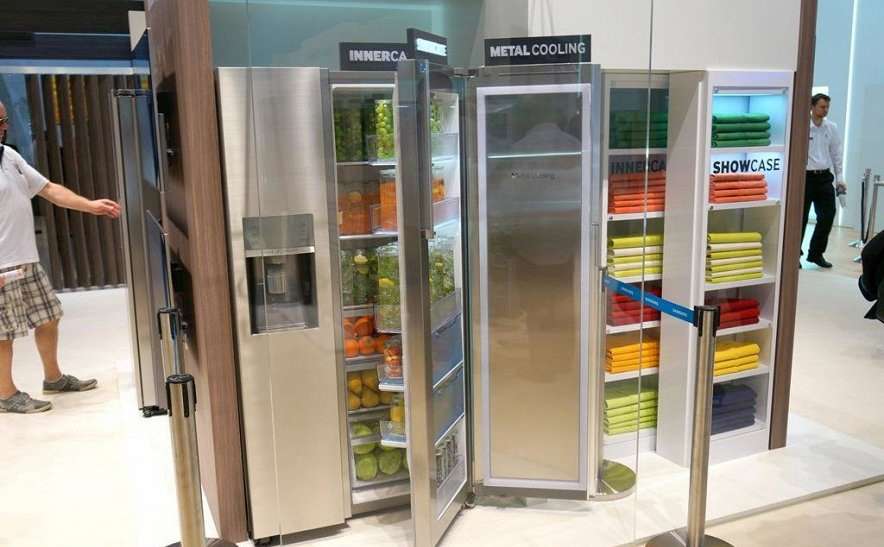 Ну и холодильниками на IFA похвастались ребята из Samsung. Упор в этом году был сделан на дорогие варианты, оснащенные множеством дополнительных функций.