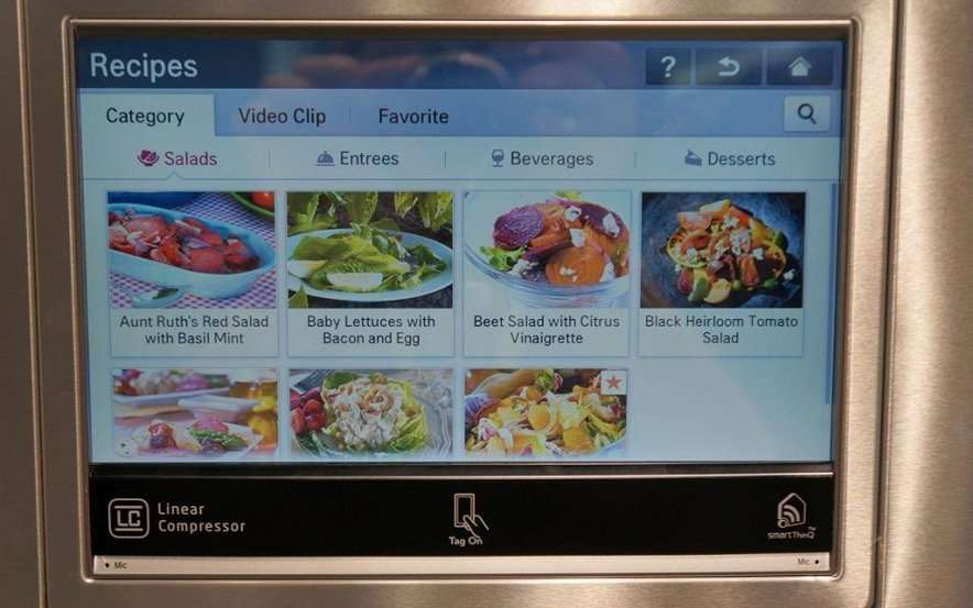 Отметим систему Smart View, позволяющую «умному» холодильнику LG Smart Refrigerator, оснащенному полным пакетом интеллектуальных технологий, делать снимки всего содержимого каждый раз, когда его дверца открывается. Благодаря этому, находясь в супермаркете, вы сможете получить представление о том, что у вас с запасов есть, а что нужно прикупить. На экран вашего смартфона или планшетного ПК будет выведено содержимое холодильника.