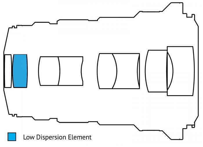 8 элементов в 6 группах 1 низкодисперсный элемент многослойное покрытие на всех элементах |
