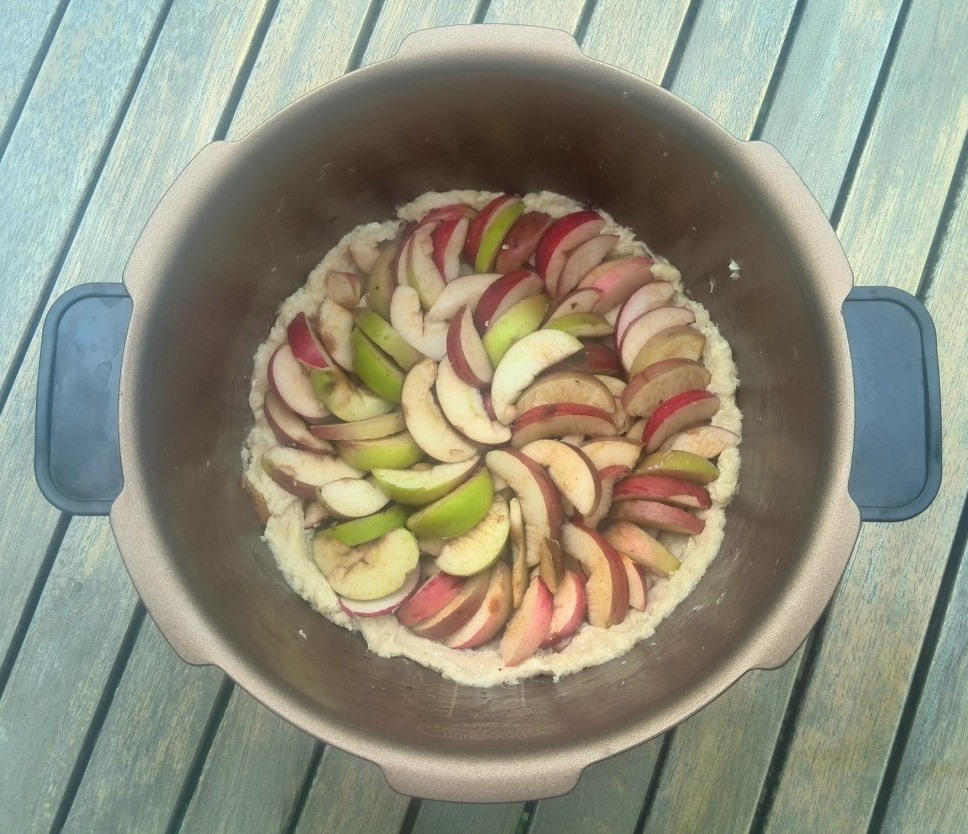 Результат приготовления в программе «Духовка» на первом уровне температуры в течение 1 часа и 10 минут таковы: я нередко делаю такой пирог в духовке и могу судить об отличиях: в духовке он получается суше, тесто — более хрустящее, яблоки подвяливаются — тут уж кому что нравится. Конечно, в духовке за температурой и пирогом надо следить — того гляди подгорит. В мультиварке тесто получается более мягким, яблоки варено-печеными. Но самое главное — тесто не бледное, а желтое и аппетитное, как и положено песочному. Пирогу надо дать остыть в чаше — он хоть и хорошо отходит от формы, но из-за нежности и мягкости может поломаться. Полностью оценить вкус и нежность пирога мы смогли только после его полного остывания и даже пары часов в холодильнике: великолепно, нежно, тесто стало нежным и рассыпчатым и таяло во рту.
