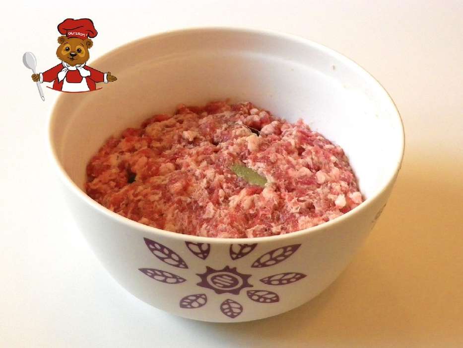 5. Достаньте фарш из холодильника, удалите лавровые листики, влейте холодную воду и тщательно перемешайте.