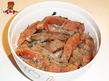 2. Перемешайте соль, сахар и петрушку и замаринуйте кусочки рыбы на сутки.