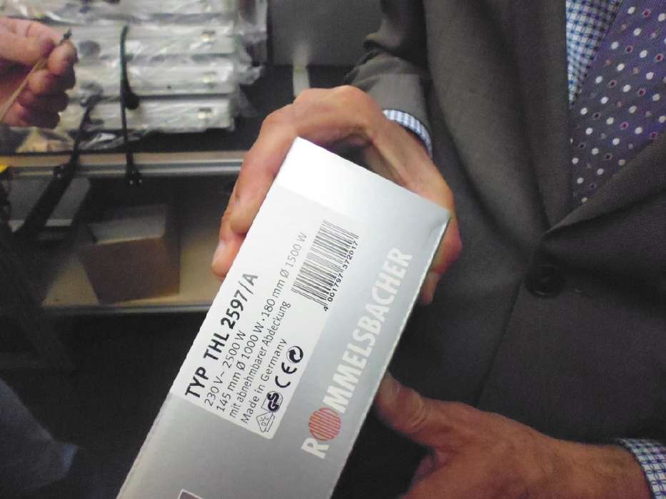 На заводе Rommelsbacher нет роботов, компьютеризированной сборки техники и т.п. Почти все, представьте себе, делается вручную: пробивание отверстий, прокладка проводов, установка спиралей, всех мелких деталей, штамповка, обрезка, промывание от масла, монтаж, склеивание и, конечно, проверка готовой продукции. Как можно проверить каждый — каждый! — прибор, который производится на заводе? Тоже вручную: например, на электропроводность, и делают это, между прочим, хрупкие женщины. Вообще же каждое изделие Rommelsbacher, выпущенное в Германии, сначала вручную включается в розетку, набирает полную рабочую мощность и проходит проверку всех основных систем работы и безопасности. И только после этого отправляется в цех упаковки.