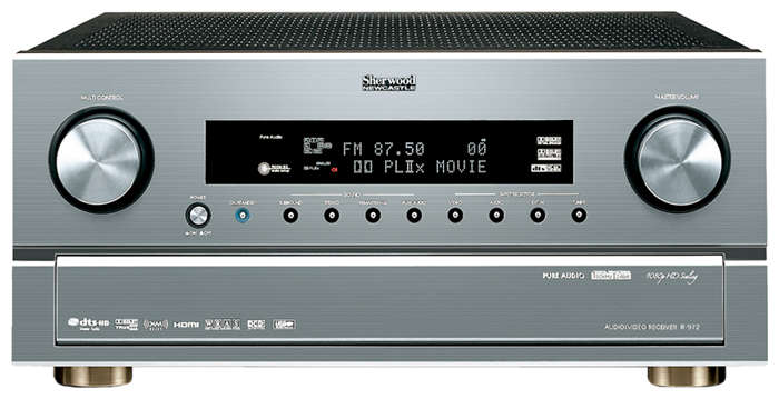 Звуковые возможности SherwoodR-972 вполне соответствуют высочайшему классу и функциональности данного аппарата. Мощность усилителя ресивера составляет 130 Вт на канал. Усилитель имеет конструкцию с раздельными контурами усиления для каждого из каналов, и вполне подходит даже для совместной работы с низкоомной нагрузкой.