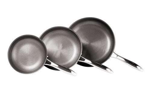 Достаточно минимального количества жира или жидкости — дальше работает запатентованное текстурированное антипригарное покрытие — чуть приподнятые над основной поверхностью «пиксели», на которых, собственно, и готовится блюдо.