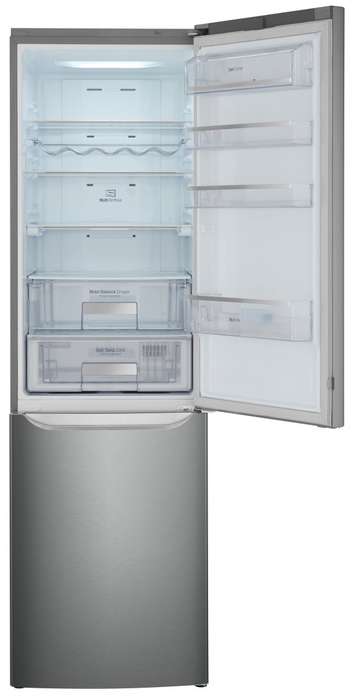 Серебристый LG GA-B489SADN благороден и нежен. Его холодный блеск позволяет придать кухне более строгий вид. Он отлично сочетается с малой бытовой техникой «под нержавейку» и ультрамодной посудой. Кухня становится похожа на профессиональную, где священнодействуют мастера своего дела и каждый прием пищи превращается в маленький праздник.