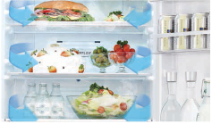 Для овощей, зелени и фруктов предусмотрен отдельный контейнер для хранения, который закрывается ячеистой крышкой Moist Balance Crisper. С ее помощью создается оптимальная влажность: в ячейках скапливается излишняя влага, поэтому на овощах, например на огурцах, не появляется плесень от сырости, что часто случается при хранении их в холодильниках. Кроме того, вода из ячеек крышки медленно испаряется, это создает в контейнере увлажненный воздух, который предохраняет овощи от высыхания, что опять-таки, случается в контейнерах с обычной стеклянной крышкой.