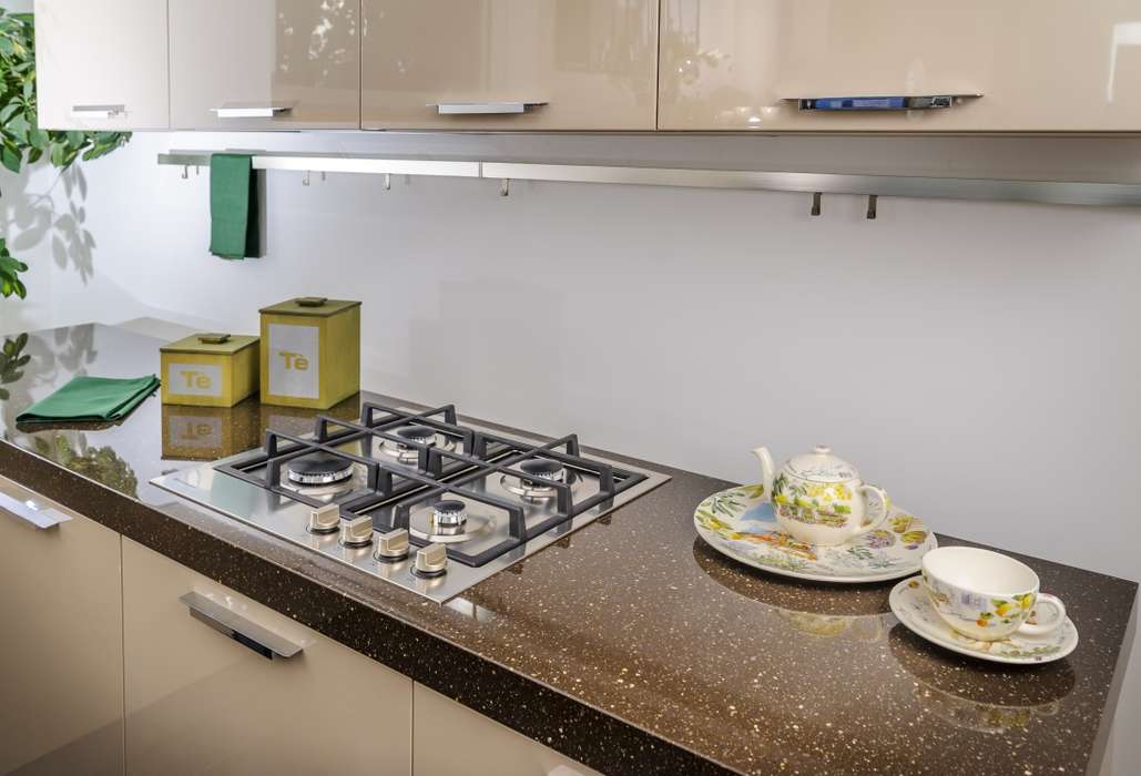 Панель устанавливается заподлицо со столешницей. Это дает два плюса. Во-первых, совмещение поверхностей выглядит достаточно эффектно. Во-вторых, упрощается уборка.