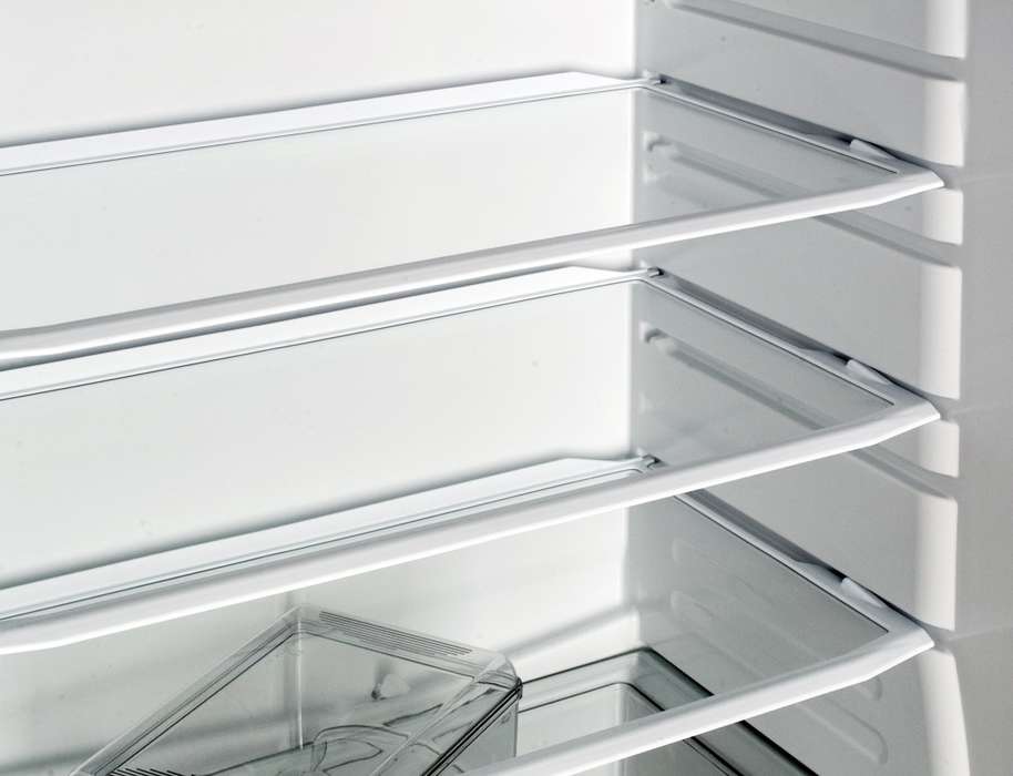 4 переставляемые полки из закаленного стекла с бортиками, препятствующими протеканию разлившейся жидкости, выдерживают до 20 кг нагрузки.