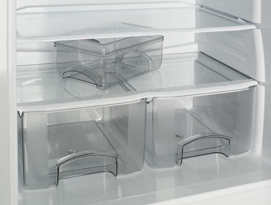 2 прозрачных пластиковых бокса во всю ширину холодильной камеры для хранения овощей и фруктов.