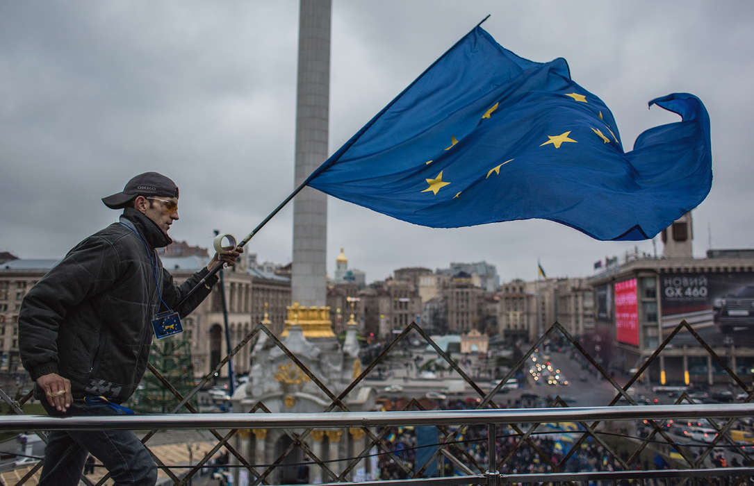 28.11.2013. Участник акции в поддержку евроинтеграции Украины на площади Независимости в Киеве.