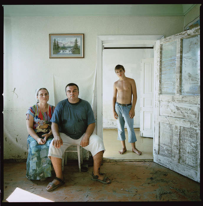 — Нет, на «Хассель», как и послевоенный Бейрут. Крымск — это пример правильного выбора стратегии и технического решения для поставленной задачи. Я приехал в Крымск на четвертый день трагедии. Быстро понял, что надо снимать внутри домов и надо снимать на цвет. В доме все видно, до какого уровня дошла вода, что пострадало. Я ставил своих героев, выбирал место. Записывал и снимал одновременно. Снимал быстро, так как через какое-то время они начинали выходить из нужного мне состояния и начинали позировать. Начал снимать людей и понял: они свидетели. Каждый рассказывает о своем — мы получаем общую картину. Было очень жарко. За день я проходил много километров. Было физически и психологически нелегко.
