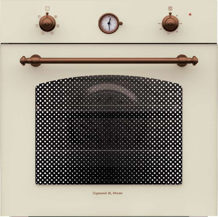 Каноны «красоты» классических духовок давно сложились, и данная модель укладывается в них почти на сто процентов. Приятный цвет фронта, сводчатое окошко, ручка и регуляторы под состаренный металл и, конечно, симпатичный программатор в виде обычных круговых часиков.