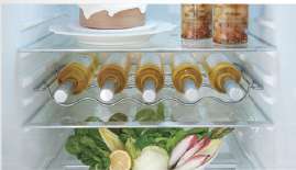Достаточно часто встречается такая ситуация, что в холодильник не помещается высокая банка или чаша от блендера. Приходится перекладывать продукты в другую емкость, что не всегда удобно. У владельцев новых холодильников LG такой проблемы не возникнет, так как в комплектации присутствует складная полка. Это гениально и просто: полка разделена на две половинки, при установке высокой посуды одна ее половинка просто вынимается из холодильника.