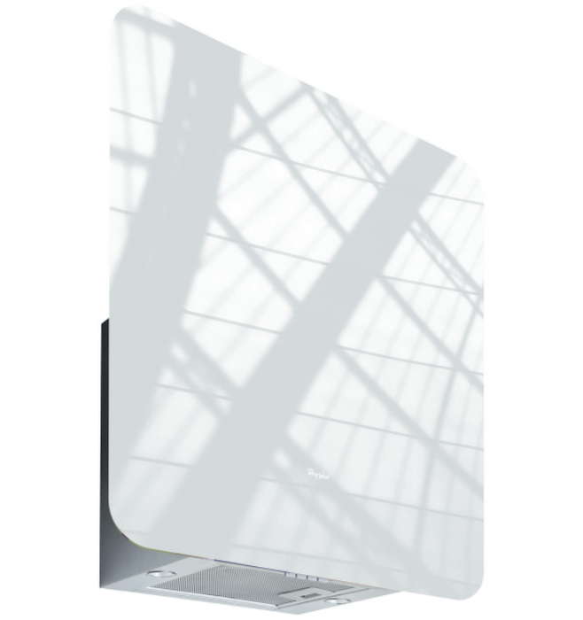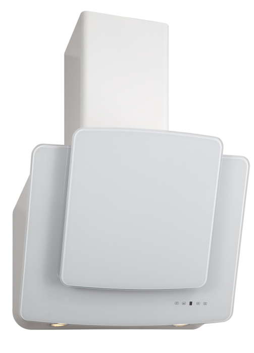Вытяжка с наклонным корпусом, фронтальная поверхность выполнена из стекла. Может быть как белой, так и черной или бежевой, все варианты выглядят эффектно.