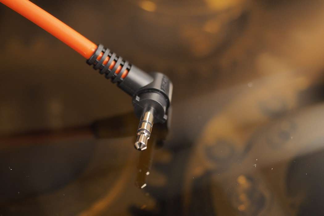Чтобы подключить наушники к оборудованию, нужно задействовать один из двух сменных кабелей, имеющихся в комплекте. Можно взять черный трехметровый с 6,3 джеком на конце, а можно - оранжевый, покороче - 1,2 м с коннектором 3,5 миллиметра.