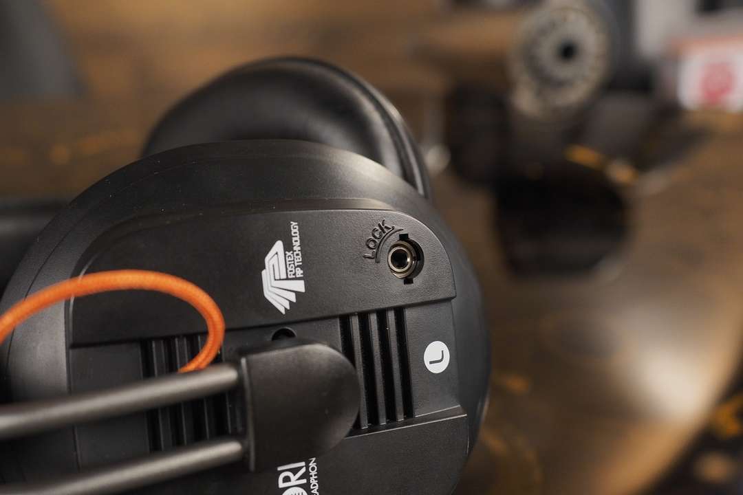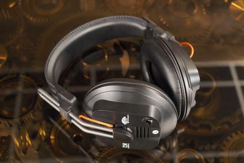 Кстати, на левом наушнике обнаружился разъем 3,5 мм. Поскольку кабель у этой модели симметричный и односторонний, правый и левый наушники соединяются между собой оранжевой плетенкой, уходящей от одной чаши к другой через макушку с оголовьем.