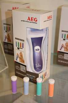 Но меня, как настоящую женщину, привлекли бьюти-новинки AEG: фен с автоматическим сматыванием шнура НТ 5650 (он появится на прилавках в декабре 2014 года) и незаменимый приборчик для педикюра — электронный ролик РНЕ 5642, удаляющий огрубевшие частички кожи стоп. Такой приборчик стоит в 1,5 раза дешевле широко разрекламированного аналога и к тому же имеет 4 сменных цветных ролика в комплекте — можно пользоваться всей семьей, не нарушая гигиены. Кроме того, AEG улучшил модель электрической зубной щетки — теперь там более мощный мотор и щетка стала намного эффективнее. Хотя самый эффективный и нужный прибор для ухода за полостью рта — это ирригатор, мощной струей моды под давлением промывающий промежутки между зубами и предотвращающий заболевания десен и зубов, незаменимый для тех, у кого есть коронки или протезы, а также для носящих брекеты.