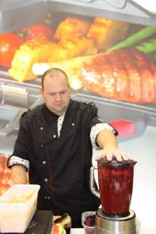 На стенде Steba гостей угощали мясом, приготовленным в удивительном приборе су-вид. Продукты в су-вид готовятся в вакууме при точно выставленной низкой температуре, ну а результат, надо, конечно, видеть — ни один другой способ приготовления не дает мясу такой сочности и нежности! Кстати, Steba является европейским лидером в производстве су-вид, которое набирают популярность у поклонников здорового образа жизни.